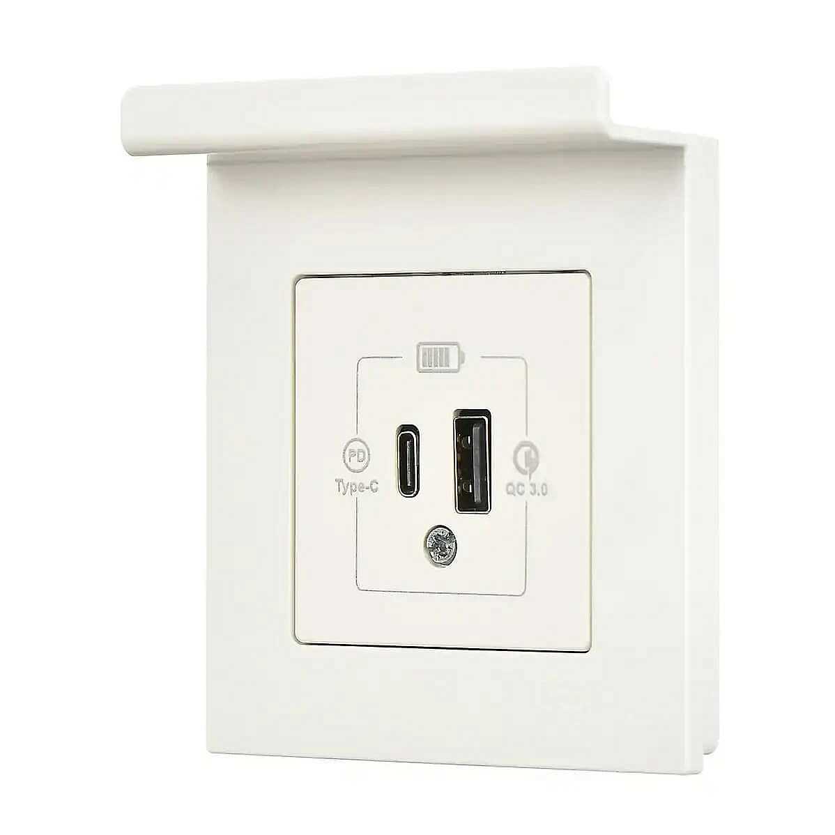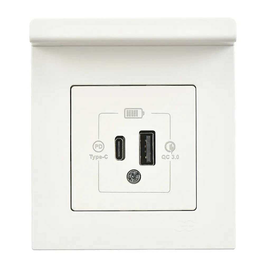 Günsan Eqona Pratik Telefon Tutucu 2 Çıkışlı USB Şarj Prizi, 20W, Type A + Type C, Fildişi Beyazı Sıvaaltı