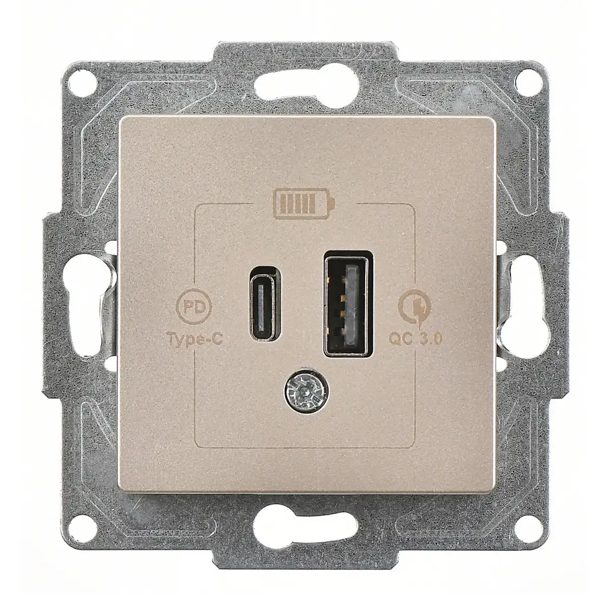 Günsan Eqona Metalik Bej 2 Çıkışlı USB Şarj Prizi - 20W (Type C + Type A) Vidalı