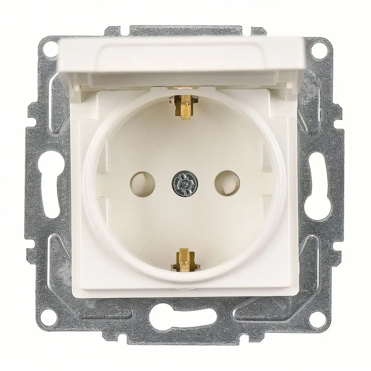 Günsan Eqona Fildişi Beyazı Çocuk Korumalı Kapaklı Topraklı Priz- 16A 250V - Vidalı