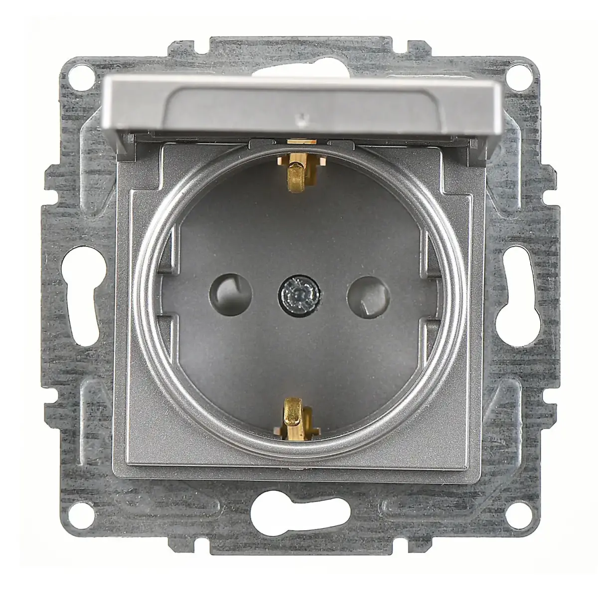 Günsan Eqona Gümüş Çocuk Korumalı Kapaklı Topraklı Priz- 16A 250V - Vidalı