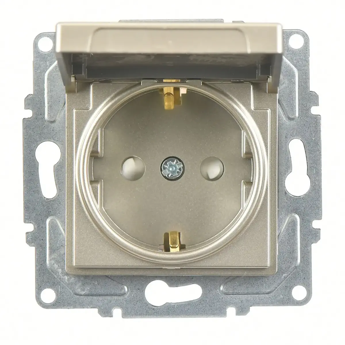 Günsan Eqona Metalik Bej Çocuk Korumalı Kapaklı Topraklı Priz- 16A 250V - Klipsli