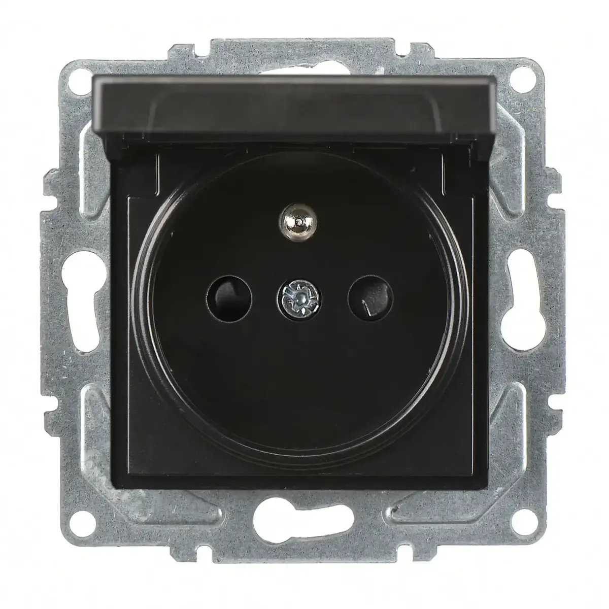Eqona / Radius / Neoline Çocuk Korumalı Kapaklı UPS Priz, Metalik Siyah (Mekanizma + Tuş/Kapak)