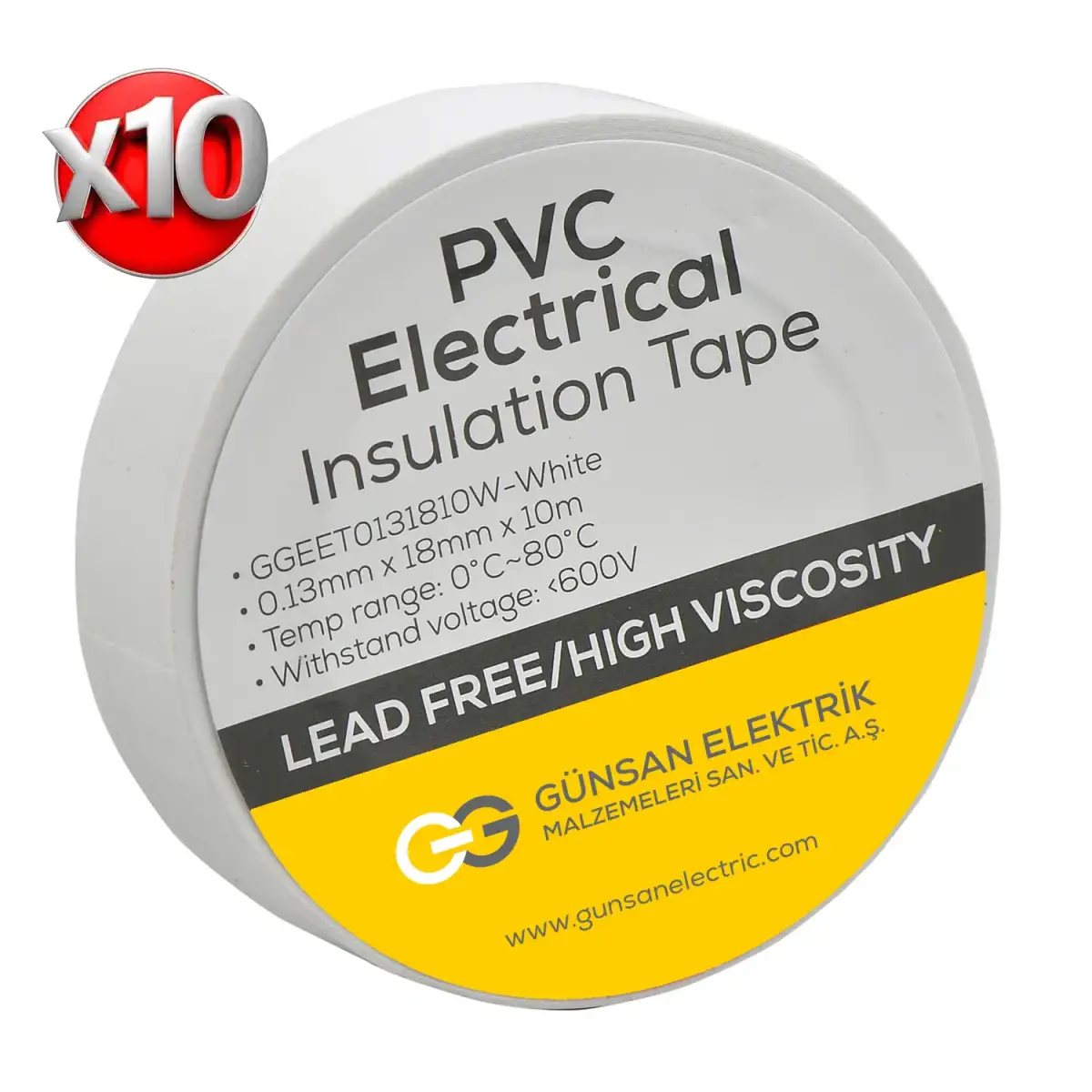 Valta 0.13mmX18mmX10m Elekrik İzolasyon Bandı Beyaz - 10'lu Paket