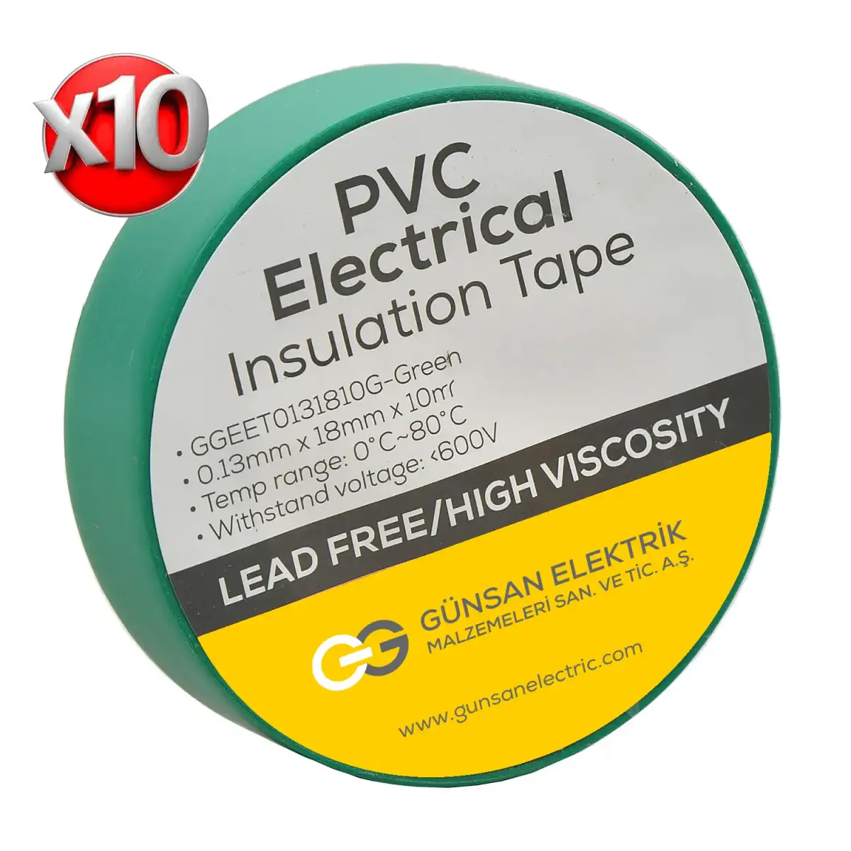 Valta 0.13mmX18mmX10m Elekrik İzolasyon Bandı Yeşil - 10'lu Paket