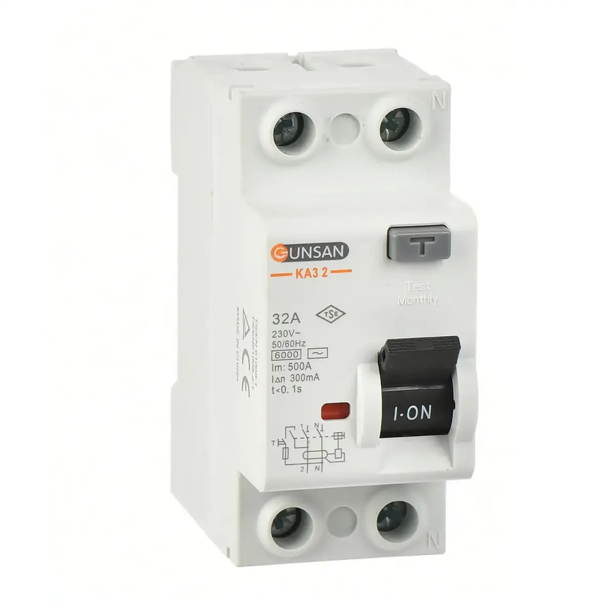 Günsan Valta AC Tip Kaçak Akım Koruma Anahtarı 2P 6kA 30mA 32A İki Kutuplu