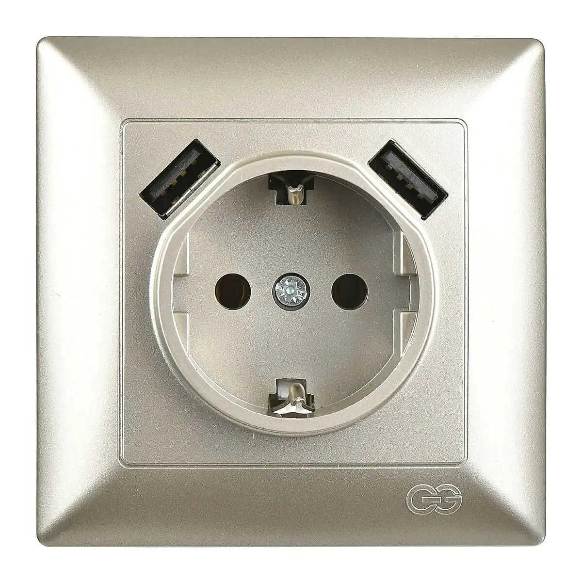 Visage 2 USB Çıkışlı Çocuk Korumalı Topraklı Priz, 5V, 2.4A, Metalik Bej