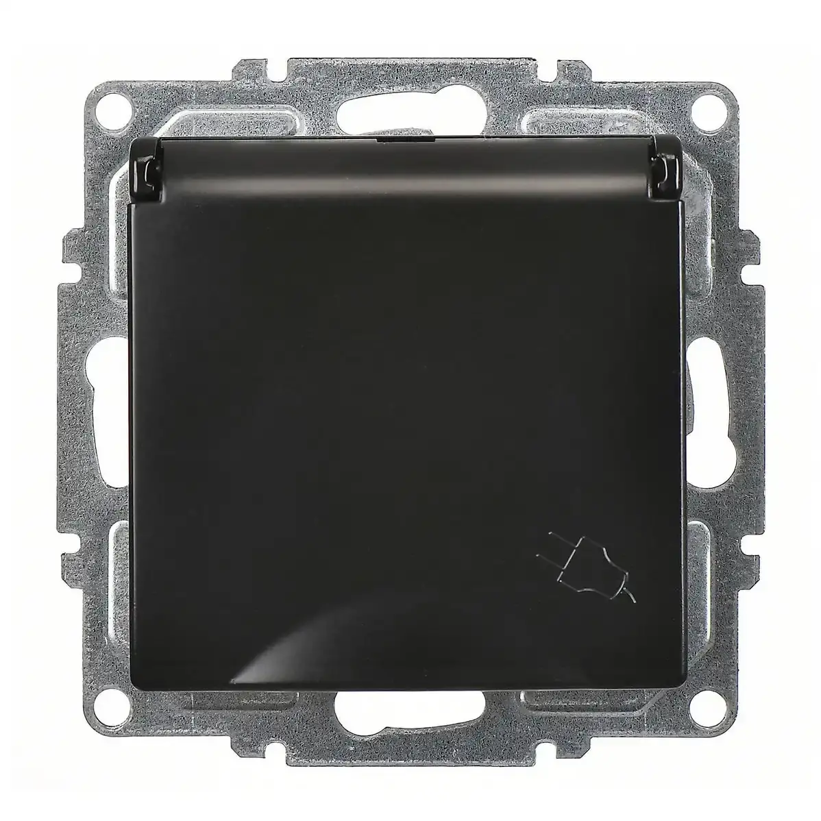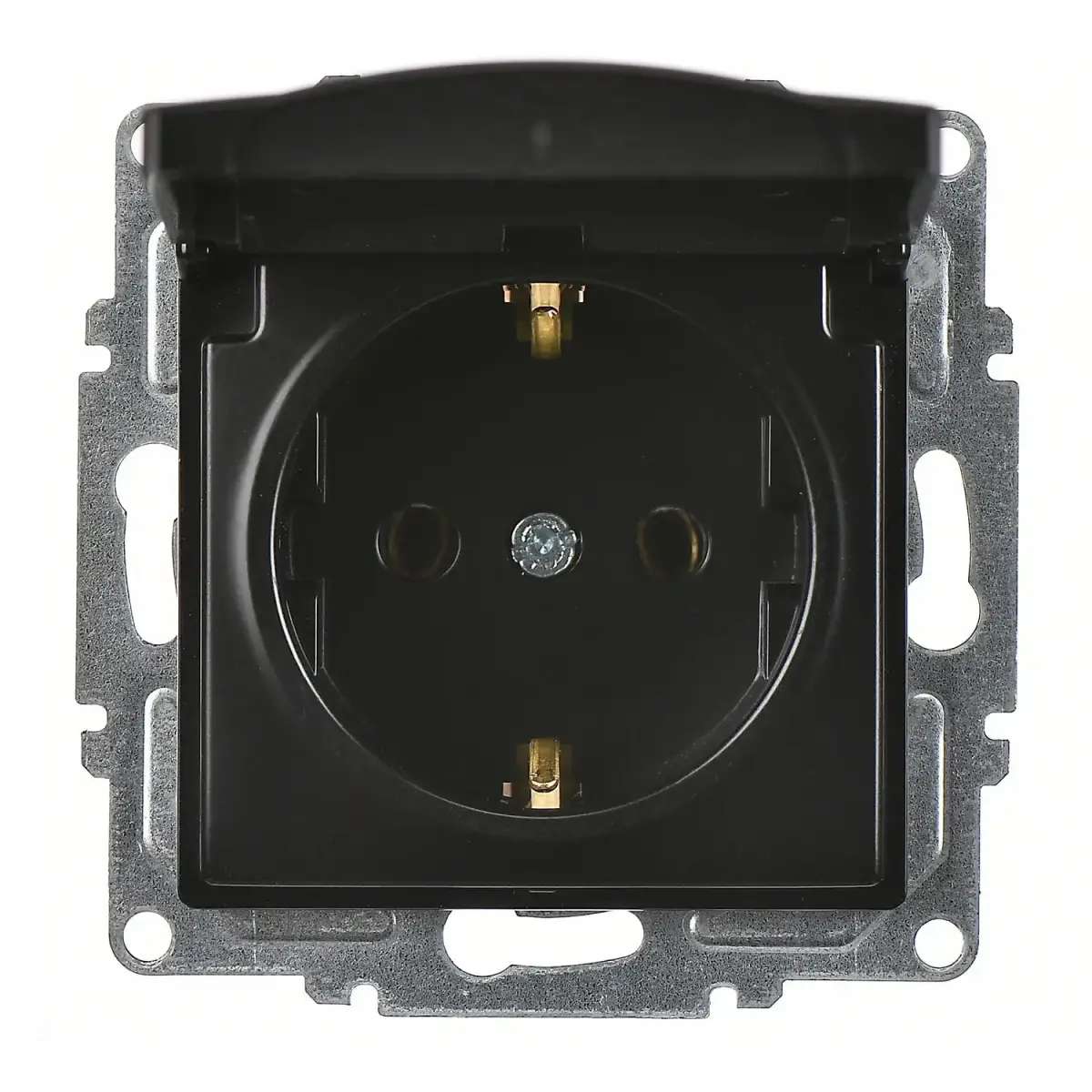 Günsan Visage Metalik Siyah Kapaklı Topraklı Priz- 16A 250V - Vidalı